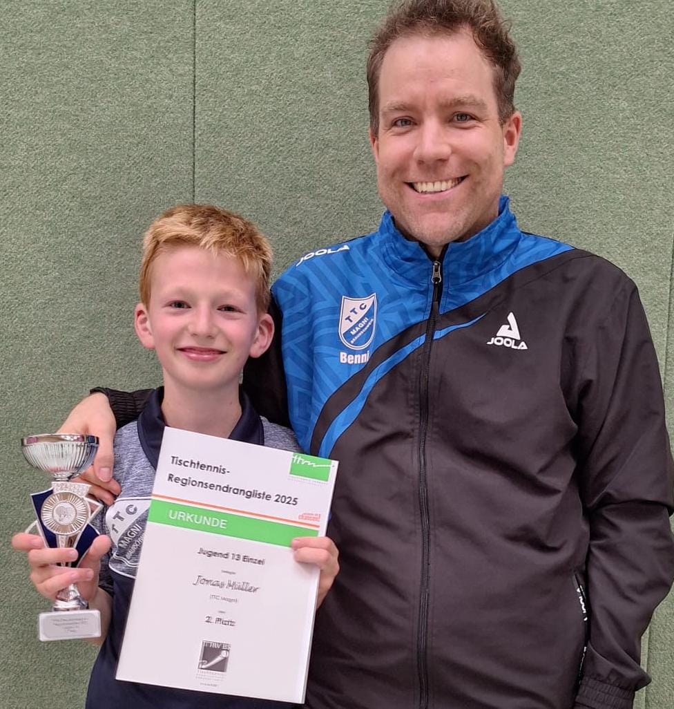 Jonas Müller, Jugendspieler des TTC Magni, belegte am Sonntag, den 30.06.2025 beim Regionsranglisten-Turnier des TT-Regionsverbandes Braunschweig sensationell den 2. Platz in der Altersgruppe Jugend 13.